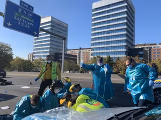 Archivo - Sanitarios del Samur atienden a un motorista de 40 años tras chocar contra un vehículo en la M-30, que finalmente ha fallecido - EMERGENCIAS MADRID - Archivo