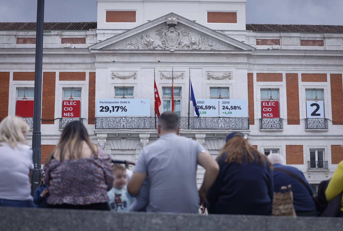 Pantallas en Sol con la evolución de la jornada electoral - COMUNIDAD DE MADRID