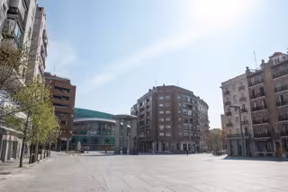 Archivo - La plaza de Felipe II vacía, con el estadio Wizink Center al fondo - Joaquin Corchero - Archivo