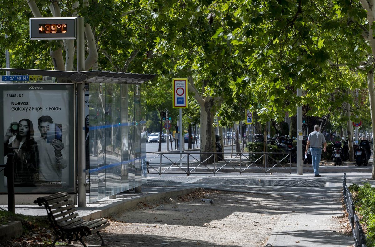 El termómetro de una parada de autobús marca 39 C, a 21 de agosto de 2023, en Madrid (España) - Alberto Ortega - Europa Press