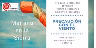 Nivel amarillo en la Sierra por viento - 112 COMUNIDAD