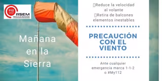 Nivel amarillo en la Sierra por viento - 112 COMUNIDAD