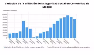 Variacion de la afiliación de la Seguridad Social en la Comunidad de Madrid - EPDATA