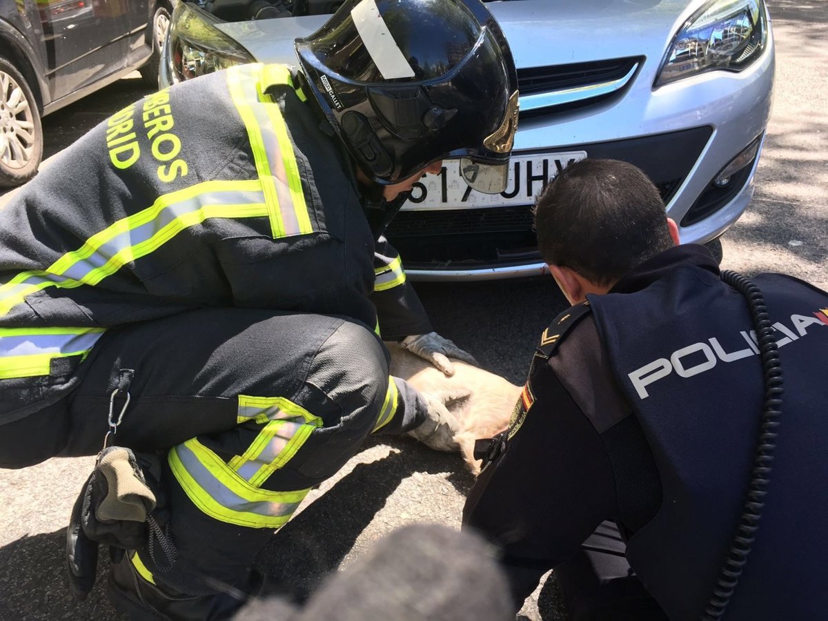Un agente de Policía Nacional y un bombero del Ayuntamiento de Madrid han tratado de reanimar durante media hora sin éxito a un perro atropellado por un turismo este lunes en el distrito de Hortaleza.
