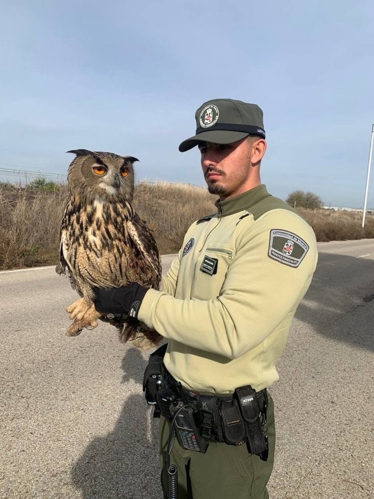 Agentes Forestales de la Comunidad de Madrid han rescatado esta semana un búho real herido tras colisionar presuntamente contra la catenaría de unas vías de tren de Alcalá de Henares, ha informado en redes sociales la cuenta de Emergencias 112.