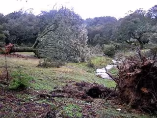El pasado 23 de febrero, en la zona suroeste de la Comunidad de Madrid, un tornado arrasó varias hectáreas de uno de los encinares mejor conservados del Sistema Central. En concreto, en Cenicientos se registraron vientos con velocidades superiores a los 150 kilómetros por hora, debido a los cuales, varias decenas de encinas centenarias fueron arrancadas de cuajo y desplazadas varios metros de su ubicación original.