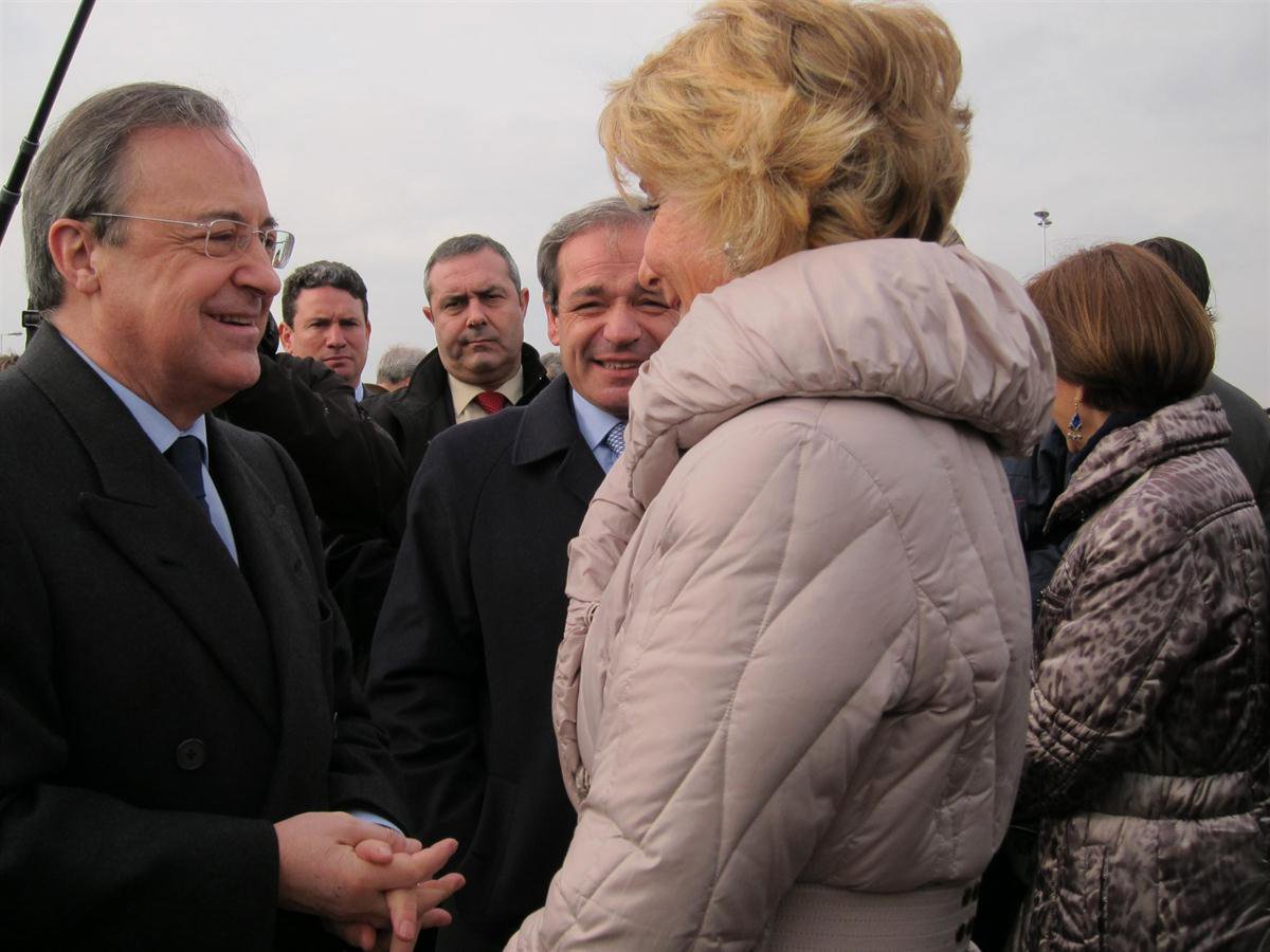 Aguirre ha vuelto a mostrar sus preferencias futbolísticas este lunes en la inauguración del nuevo enlace de una carretera de la Comunidad, donde ha coincidido con Florentino Pérez, que ha acudido en calidad de presidente del Grupo ACS, cuya empresa Dragados, ha sido la responsable de las obras.