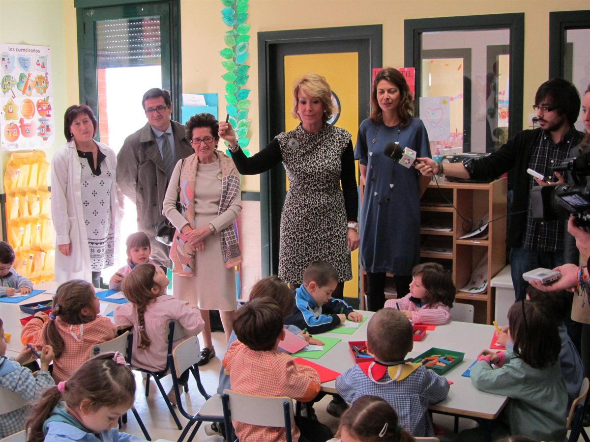 La presidenta de la Comunidad de Madrid, Esperanza Aguirre, ha inaugurado este jueves el colegio público de Educación Infantil y Primaria Rodríguez Sahagún que, con el nombre del ex alcalde, es el primer centro de estas características que abre sus puertas en el Ensanche de Vallecas.