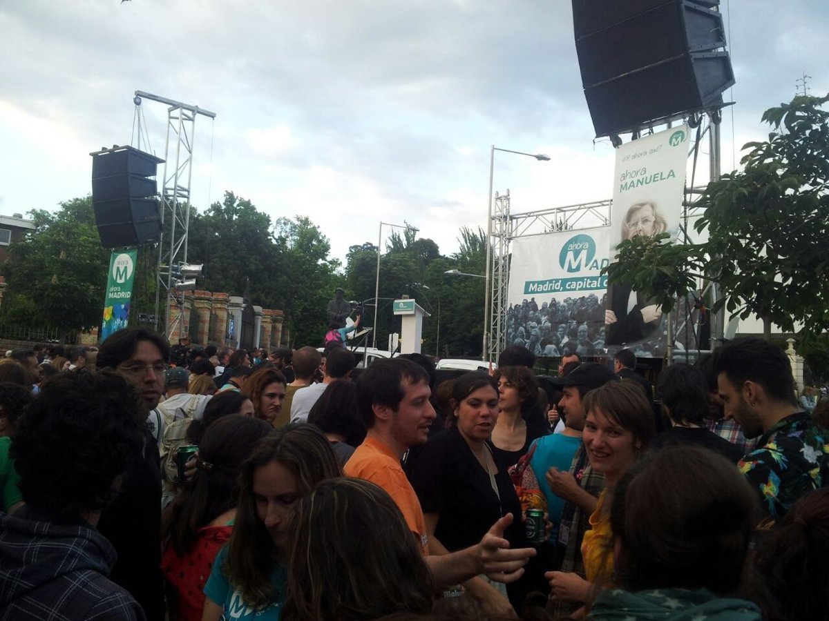Hasta la Cuesta de Moyano se han acercado desde las 19.30 horas decenas de personas, además de muchos de los candidatos de Ahora Madrid. Entre ellos, con caras muy sonrientes se encontraba el 'número cuatro', Mauricio Valiente; la número tres, Inés Sabanés; el 'número seis', Pablo Soto; el 'número ocho', Pablo Soto; o el 'número doce', Guillermo Zapato, uno de los más visibles esta campaña.
