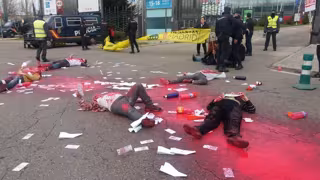 Ahora Madrid ha mostrado su apoyo a los activistas de la plataforma Desarma Madrid que han realizado este martes una performance contra el Salón Internacional de Tecnologías de Seguridad Nacional (Homsec) porque la ciudad está "contra el negocio de la muerte".