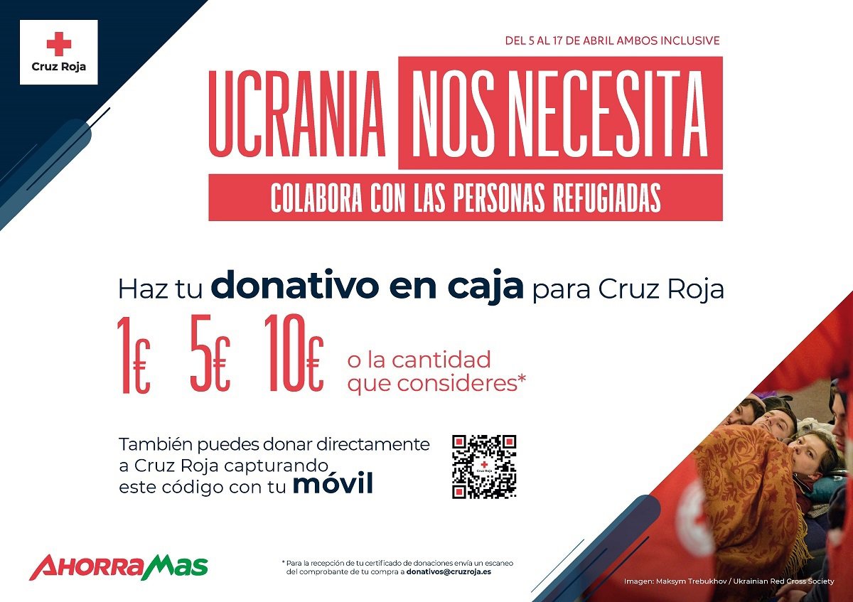 La cadena de supermercados Ahorramas ha donado 50.000 euros a través de Cruz Roja para tratar de paliar la situación de vulnerabilidad que viven las personas de origen ucraniano que están llegando a España.