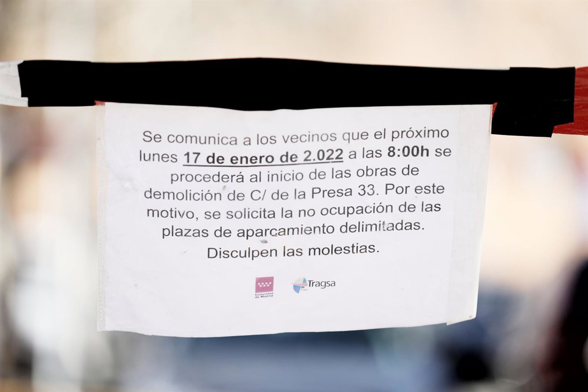 Archivo - Un cartel anuncia las obras de demolición en las casas afectadas por la línea 7B de Metro - Eduardo Parra - Europa Press - Archivo