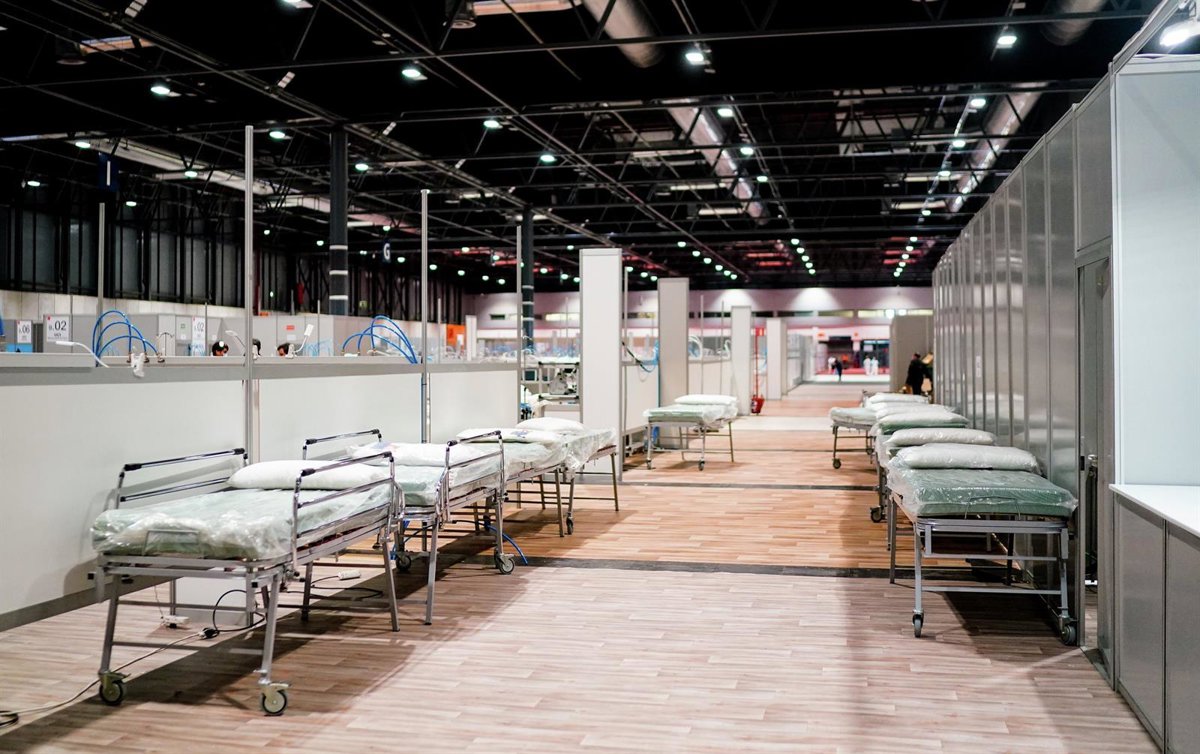 El hospital se ubica los pabellones 7 y 9, donde están previstas las primeras 1.300 camas convencionales más 96 puestos UCI, suman cerca de 35.000 metros cuadrados.