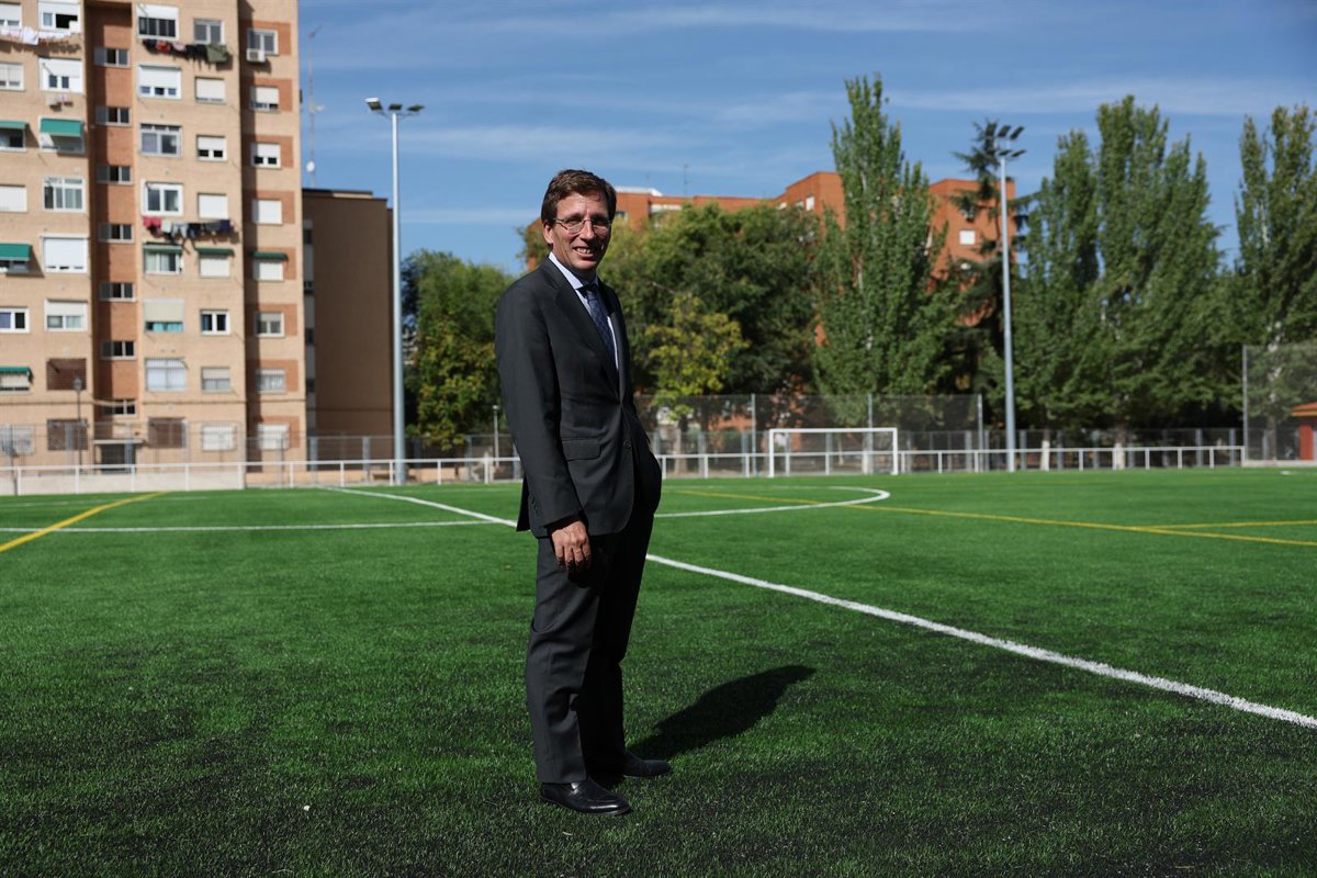 Archivo - El alcalde de Madrid, José Luis Martínez-Almeida, posa durante una visita al nuevo campo de fútbol 'Soledad Cazorla' - Isabel Infantes - Europa Press - Archivo