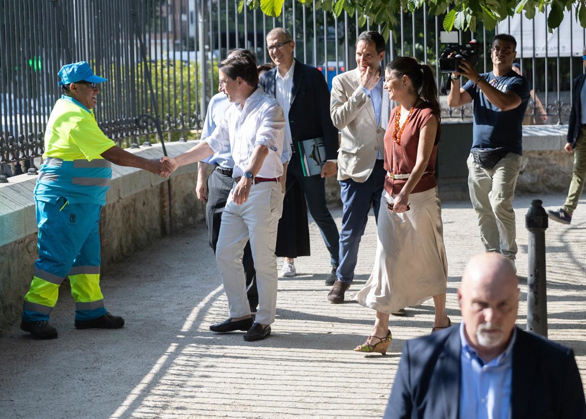 El alcalde de Madrid, José Luis Martínez-Almeida (2i), acompañado por la concejala de Retiro, Andrea Levy (d), visitan el refugio antiaéreo del parque del Retiro - Eduardo Parra - Europa Press