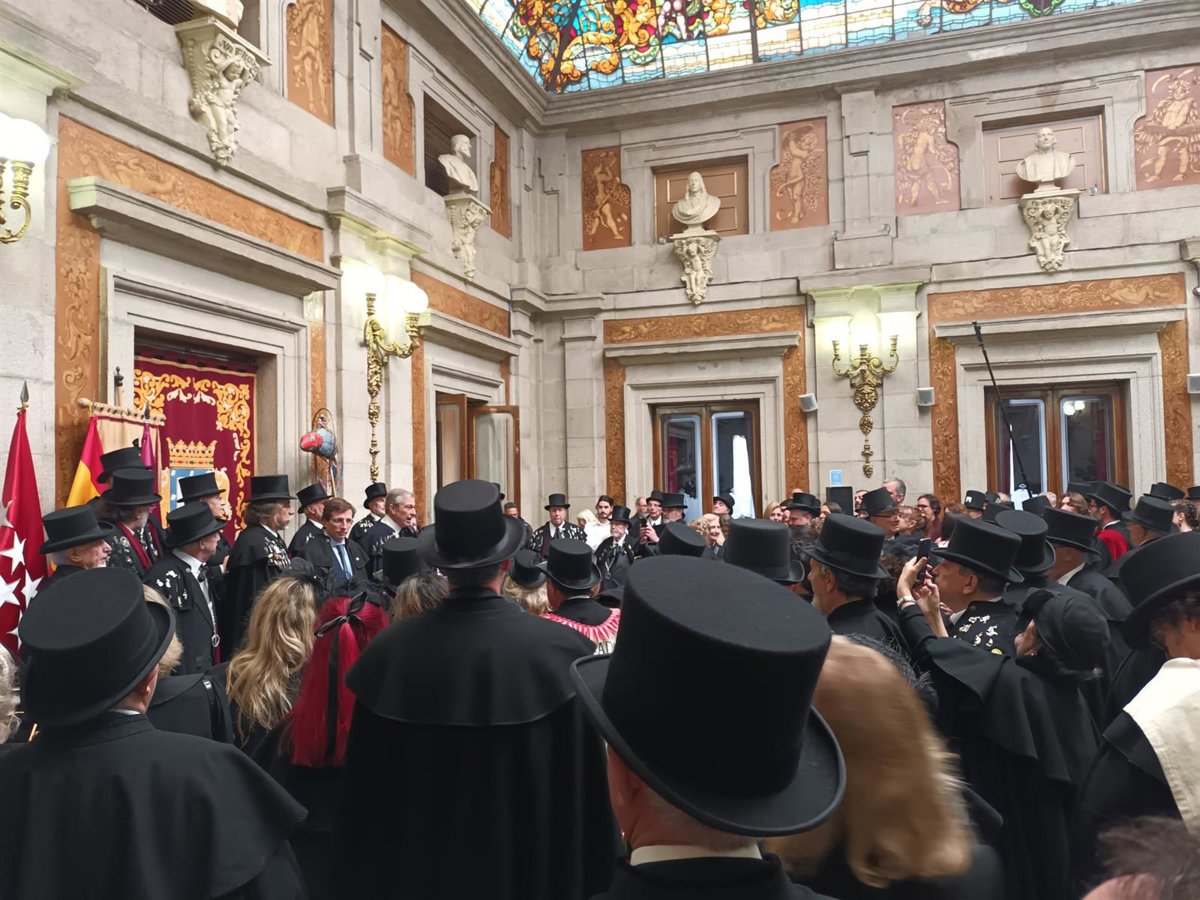 Lo ha hecho tras recibir a la Cofradía del Entierro de la Sardina en el Patio de Cristales de la Plaza de la Villa, donde se ha celebrado el penúltimo último acto del Carnaval madrileño.