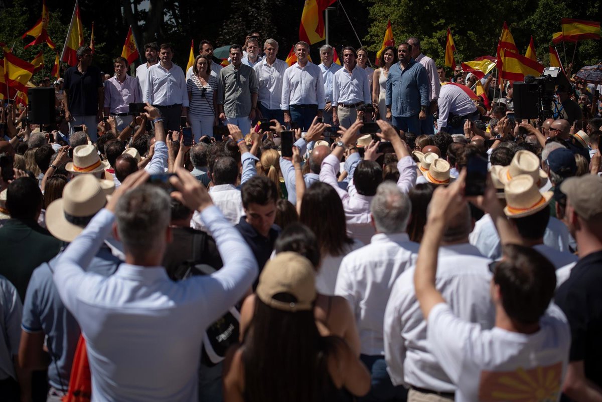 Líderes del PP junto al presidente de partido, Alberto Núñez Feijóo, en la manifestación convocada bajo el lema 'Mafia o democracia' - Fernando Sánchez - Europa Press