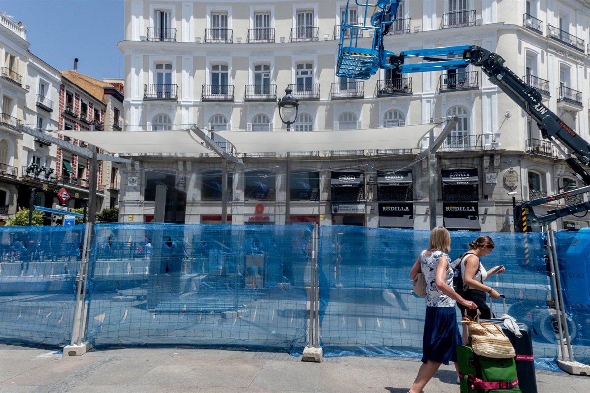 Instalación de unos toldos en la Puerta del Sol - Ricardo Rubio - Europa Press