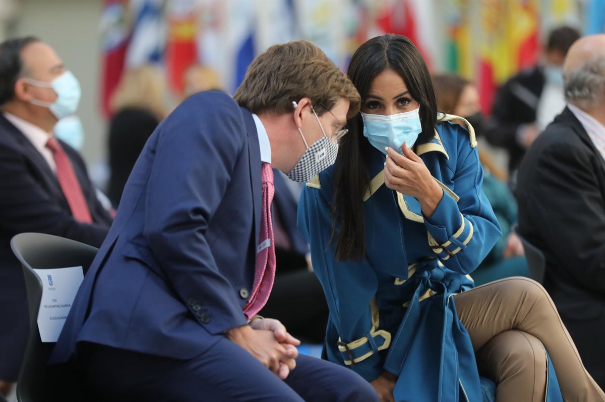 El alcalde de Madrid, José Luis Martínez-Almeida, conversa con la vicealcaldesa de Madrid, Begoña Villacís. - Isabel Infantes - Europa Press