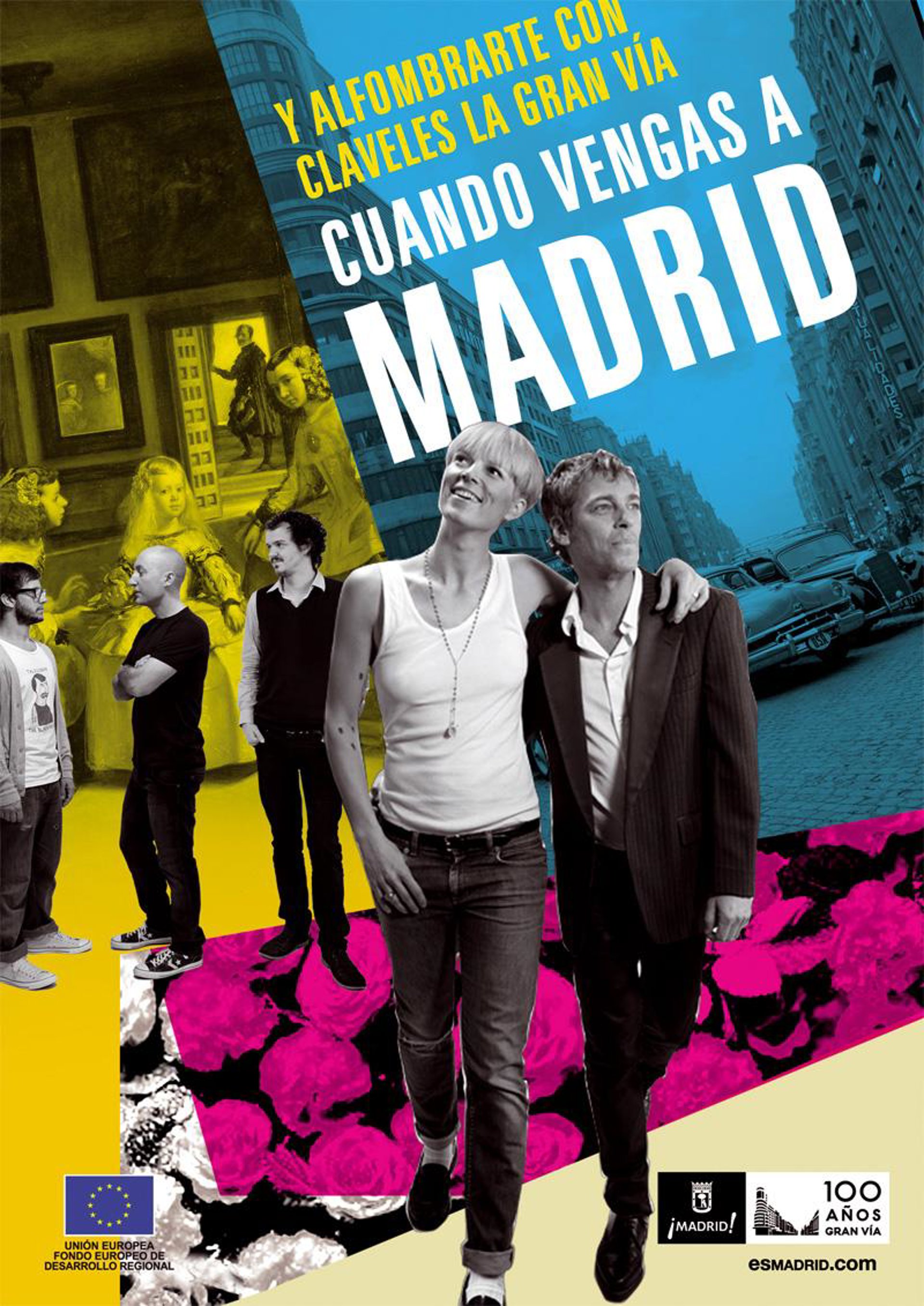 Así, la campaña 'Cuando vengas a Madrid' incluye a diferentes personajes relevantes de la cultura que saludan a los turistas que lleguen a la capital a través del aeropuerto de Barajas. Para dotar de unidad a toda la iniciativa, la Gran Vía será el referente gráfico de la campaña.