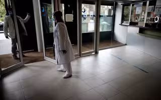 Una sanitaria del Centro de Salud García Noblejas recibe a un paciente durante su jornada laboral en la pandemia del coronavirus, en Madrid (España) a 7 de mayo de 2020. - Eduardo Parra - Europa Press