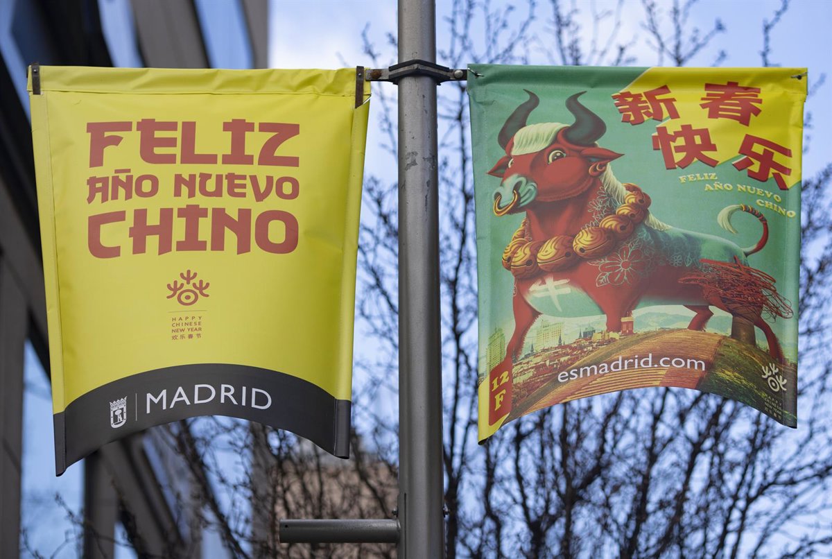 Archivo - Carteles promocionales del Año Nuevo chino en el distrito de Usera, en Madrid (España), a 12 de febrero de 2021. El 22,4% de los habitantes chinos de Madrid se concentran en este distrito, por ello, a pesar de que las celebraciones por el Año - Eduardo Parra - Europa Press - Archivo