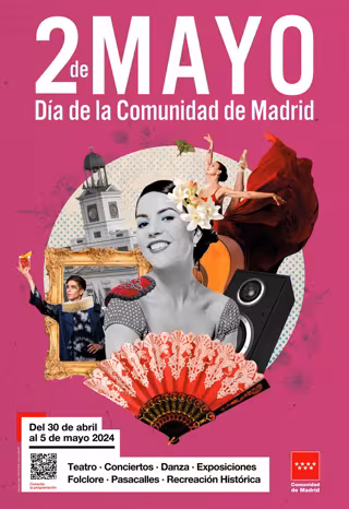 El cartel escogido para ilustrar este evento está protagonizado por el color rosa del capote --en un guiño a la Feria de San Isidro-- los topos del vestido de la chulapa, un abanico y una hombrera con alusiones goyescas, el vermú madrileño que sostiene el actor o los nardos típicos del pasodoble 'Por la calle de Alcalá'.