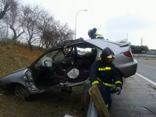 El conductor, que es el que peor parado ha salido, ha quedado atrapado por los pies y ha tenido que ser rescatado por los Bomberos del Ayuntamiento de Madrid, mientras que los hijos han podido salir por su propio pie.