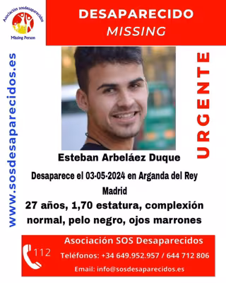 A Esteban Arbaláez Duque se le perdió la pista pasadas las 17 horas del día 3 cuando se dirigía hacia el Metro de La Poveda. Tras los primeros intentos de localización sin éxito, sus familiares denunciaron la desaparición el día 6 en la comisaría de la Policía Nacional del madrileño distrito de Barajas.