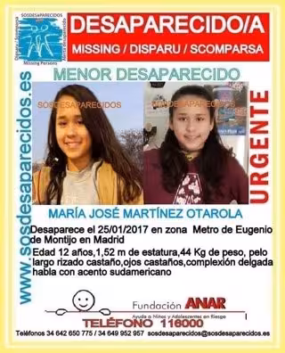 Según habían informado a Europa Press desde la Fundación Anar, que ha realizado los carteles sobre la desaparición de la niña, se trataba de María José, que acudió a una tienda de alimentación tras salir de clase junto a un compañero, Reghuel, de 13 años.