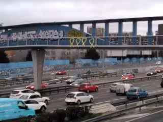 Varios lazos amarillos han sido colocados durante la madrugada de este viernes en algunos puentes de Madrid, con el objetivo de "solidarizarse con los presos políticos catalanes".