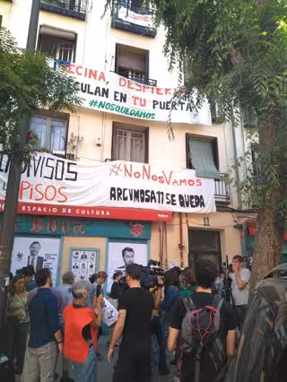 Se trata del tercer desahucio que se aplaza en el mismo edifico en el mes de julio. El bloque fue adquirido en parte por la empresa Inversión en Proindivisos S.L., que el movimiento ha calificado como "buitres que especulan" en Madrid.