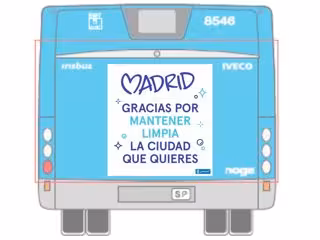 El Ayuntamiento de Madrid lanza a partir de este lunes una campaña de concienciación ciudadana sobre la limpieza con cartelería en 65 autobuses en la capital y que en fases posteriores se irá extendiendo por fases los mensajes en marquesinas (1.050 carteles), contenedores, cubos de basura y con señales viales en calles y plazas de distrito (4.200).