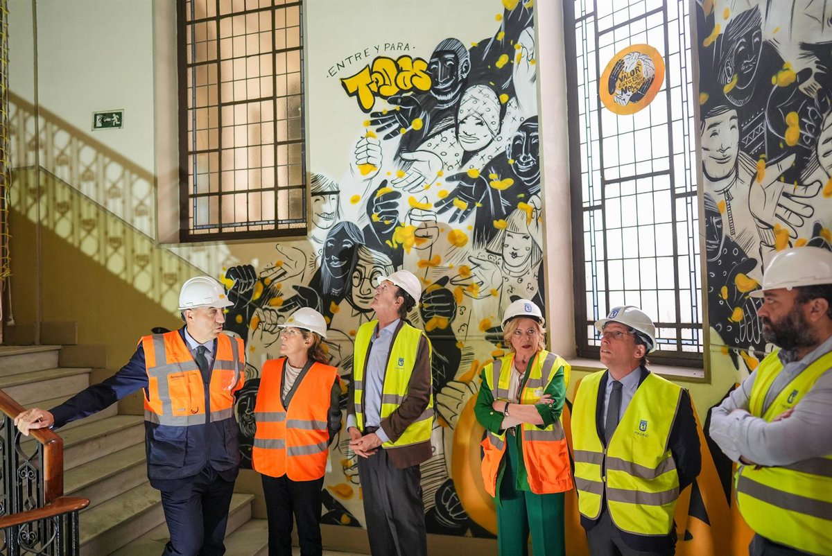 Acompañado por la delegada de Obras y Equipamientos, Paloma García Romero, y el concejal-presidente de Centro, Carlos Segura, el alcalde ha visitado esos primeros trabajos de consolidación estructural de un proyecto presupuestado en 3,9 millones de euros, financiados en un 48% por el Ayuntamiento y en un 52 por la Comunidad atendiendo a la superficie que ocuparán los futuros equipamientos. En su conjunto, el inmueble suma una superficie construida de 3.397 metros cuadrados.
