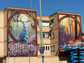Artistas locales de Fuenlabrada están ultimando cuatro murales que lucirá la fachada de un edificio situado en la avenida Francisco Javier Sauquillo y que plasmarán, a través de una visión en 360 grados, el mundo a través de las cuatro estaciones del año.