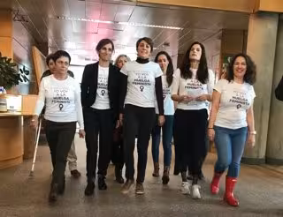 Así, antes del Pleno las diputadas de Podemos, con su portavoz, Lorena Ruiz-Huerta, al frente han acudido a la Cámara regional con una camiseta en la que se podía leer 'Yo voy a la huelga' y han recordado que se ausentarán de la sesión plenaria y se sumarán a esta huelga convocada "en más de 170 países".