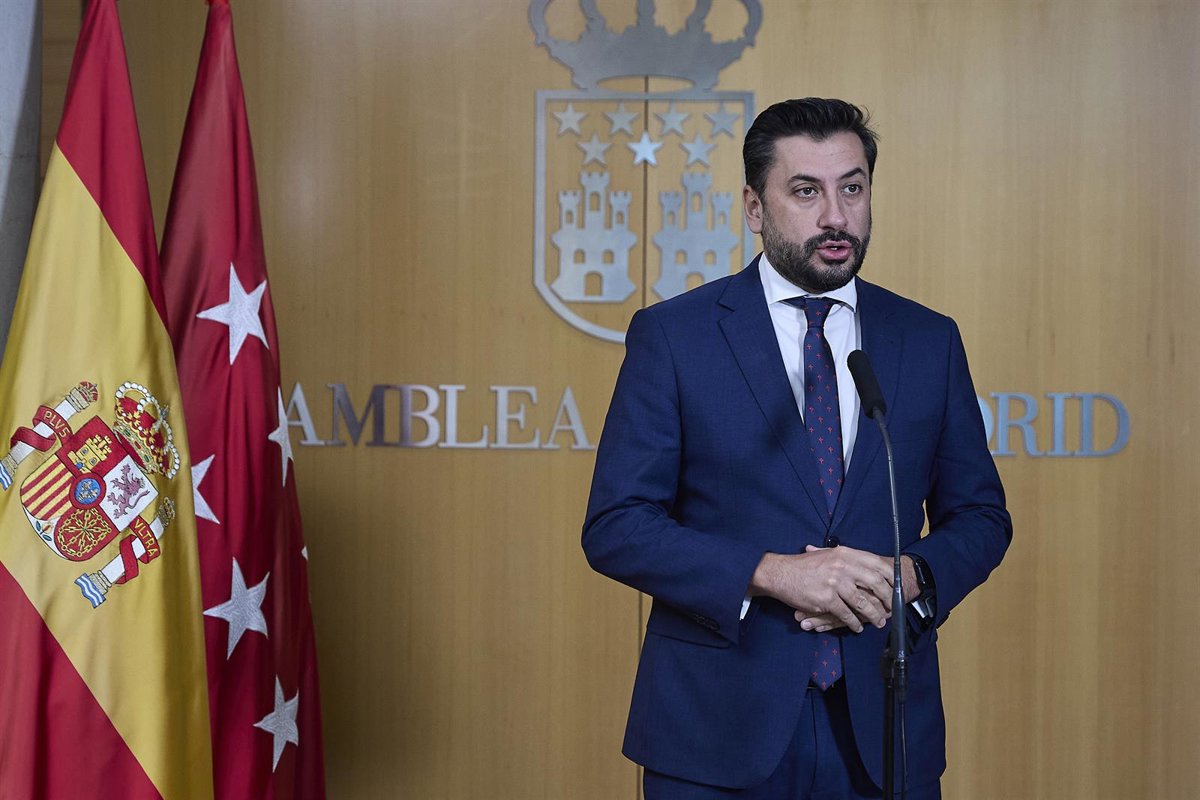 Archivo - El portavoz del PP en la Asamblea, Carlos Díaz-Pache, ofrece una rueda de prensa a su llegada a un pleno de la Asamblea de Madrid - Jesús Hellín - Europa Press - Archivo