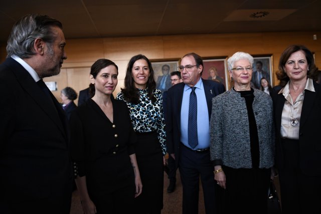 La presidenta de la Comunidad de Madrid, Isabel Díaz Ayuso, miembros del Gobierno autonómico, diputados, concejales, comunidad judía, religiosos cristianos y familiares de víctimas se han dado cita en la Cámara regional para asistir a este acto de recuerdo.