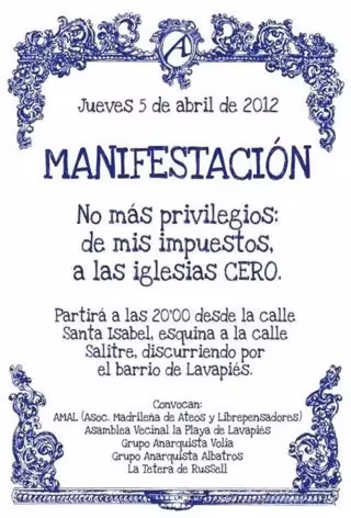 "Ante las constantes negativas a su realización por parte del Gobierno Civil y el Tribunal Superior de Justicia hemos decidido recurrir al Tribunal Constitucional por entender que estas prohibiciones, este año es la cuarta, conculcan el derecho constitucional de libertad de manifestación y expresión en un Estado aconfesional", ha denunciado la Asociación Madrileña de Ateos y Librepensadores.