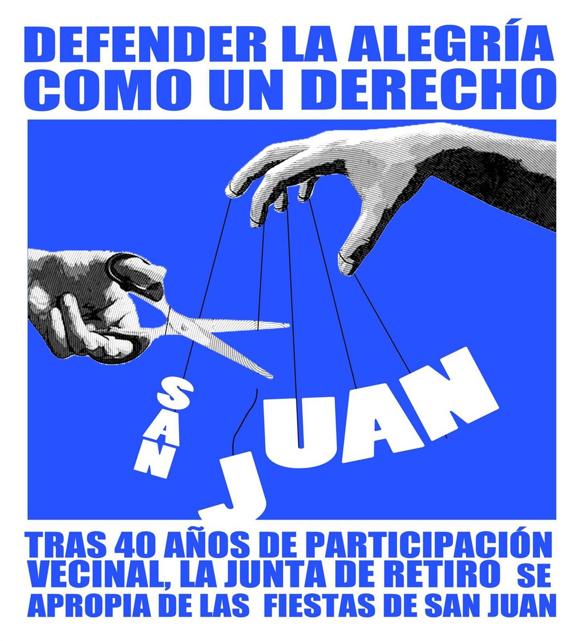 Retiro Norte ha sido promotora y organizadora durante las cinco ediciones anteriores de las fiestas de San Juan en el barrio pero en esta ocasión están viendo que la Junta de Distrito no les está permitiendo hacerlo "y están bloqueando la celebración de las actividades".