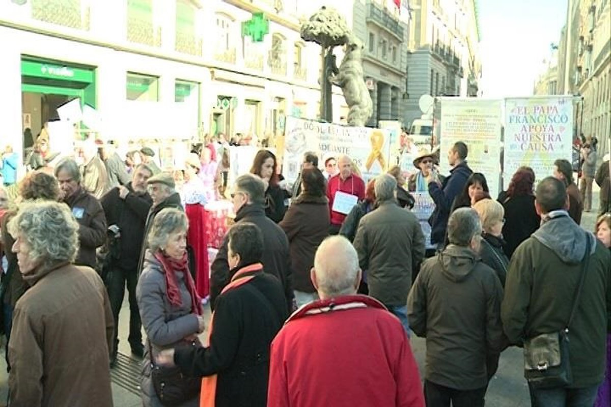 Las asociaciones madrileñas de víctimas por el 'robo de niños' se han concentrado este domingo en la Puerta del Sol para informar a la ciudadanía sobre la situación de los afectados y reclamar justicia.