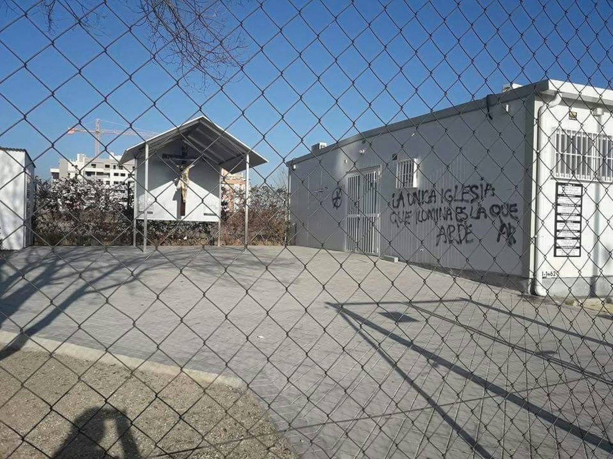 La parroquia madrileña de Santa María de Nazaret, ubicada en el barrio de La Gavia, en Vallecas, fue atacada el pasado jueves con pintadas en su fachada en las que podía leerse frases como 'la única iglesia que ilumina es la que arde'.