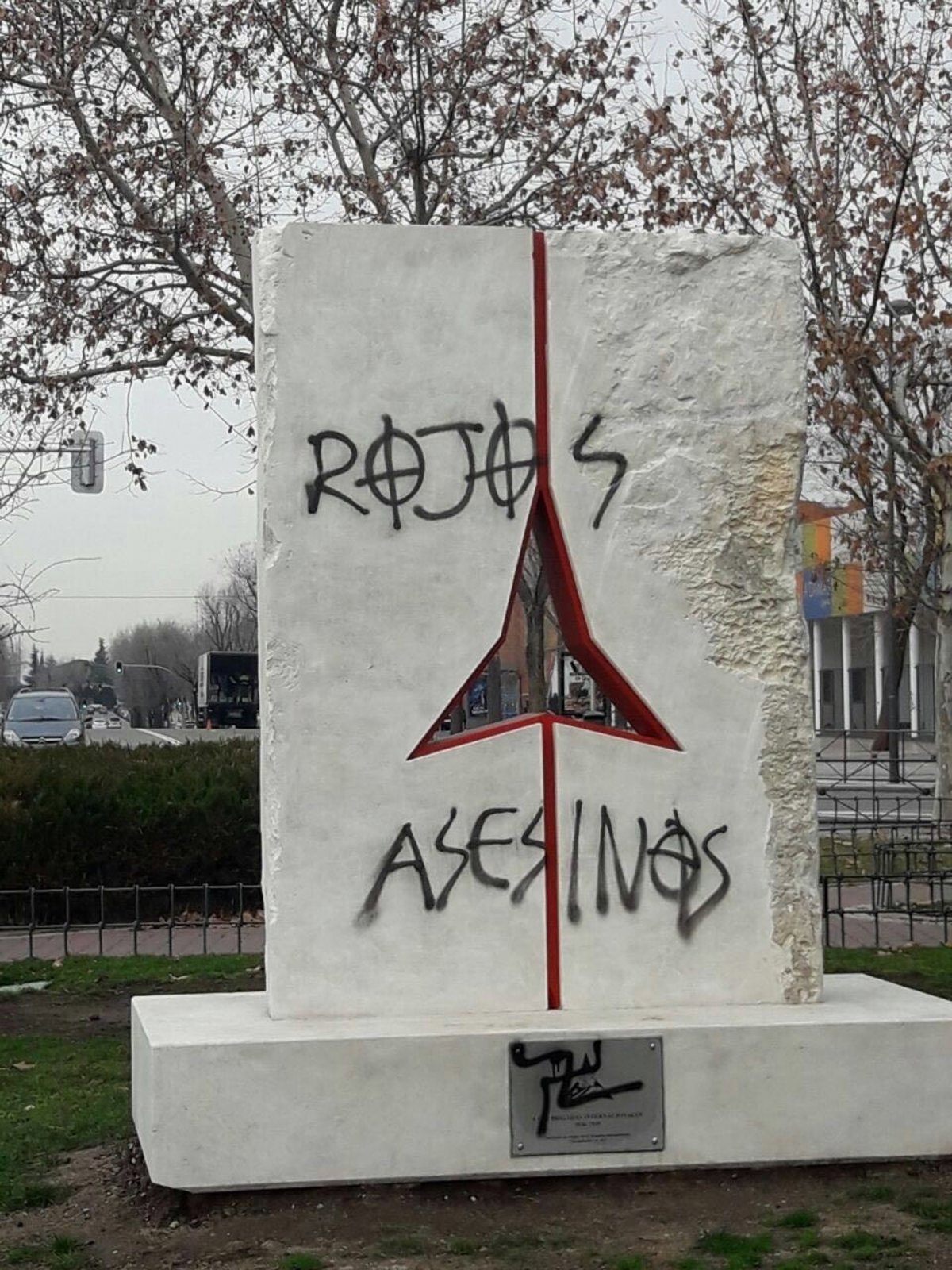 El monumento a las Brigadas Internacionales instalado en Vicálvaro el pasado mes de noviembre ha sido atacado con una esvástica y una pintada en la que se puede leer "rojos asesinos".