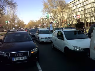 Estos atascos han comenzado alrededor de las 16.30 horas de este jueves por las principales vías de la capital, provocando que muchos conductores hayan llegado a parar sus vehículos, porque a antes de llegar al Paseo de Recoletos, la circulación estaba prácticamente parada.