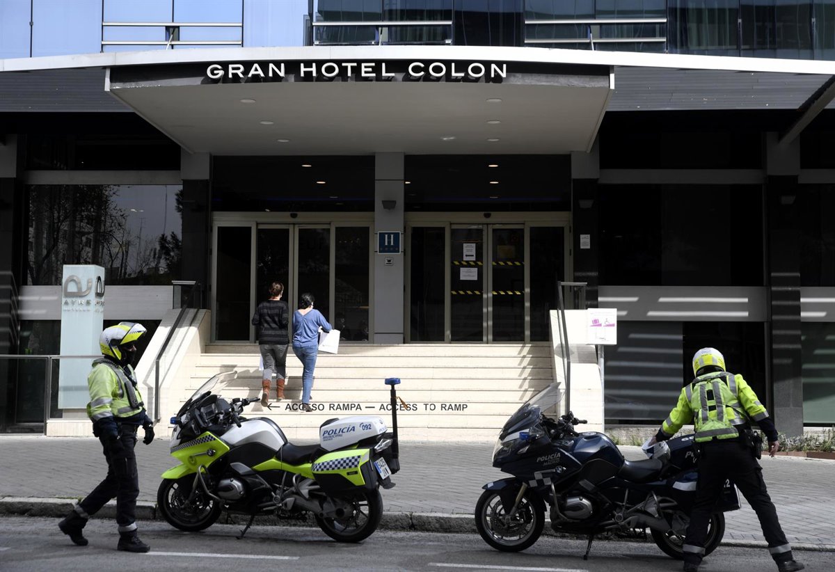 Los hechos han ocurrido sobre las 3.50 horas de este martes. Una patrulla del distrito de Retiro, junto con un equipo de Bomberos de Madrid han sido requeridos porque una enferma se había encerrado en una habitación del medicalizado Hotel Colón en estado agresivo y diagnosticada con el Covid-19, que además portaba un trozo de cristal a modo de arma y no paraba de dar voces.