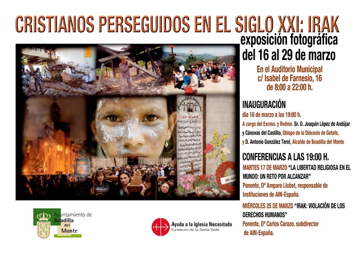 El Auditorio Municipal de Boadilla del Monte acogerá, a partir del próximo lunes, la exposición 'Cristianos perseguidos en el siglo XXI' promovida por la Fundación de la Santa Sede Ayuda a la Iglesia Necesitada (AIN), ha informado el Ayuntamiento en un comunicado.