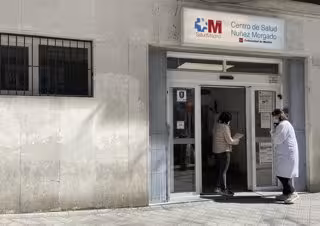 Archivo - Una mujer conversa con una trabajadora sanitaria en la puerta del Centro de Salud Núñez Morgado - Eduardo Parra - Europa Press - Archivo