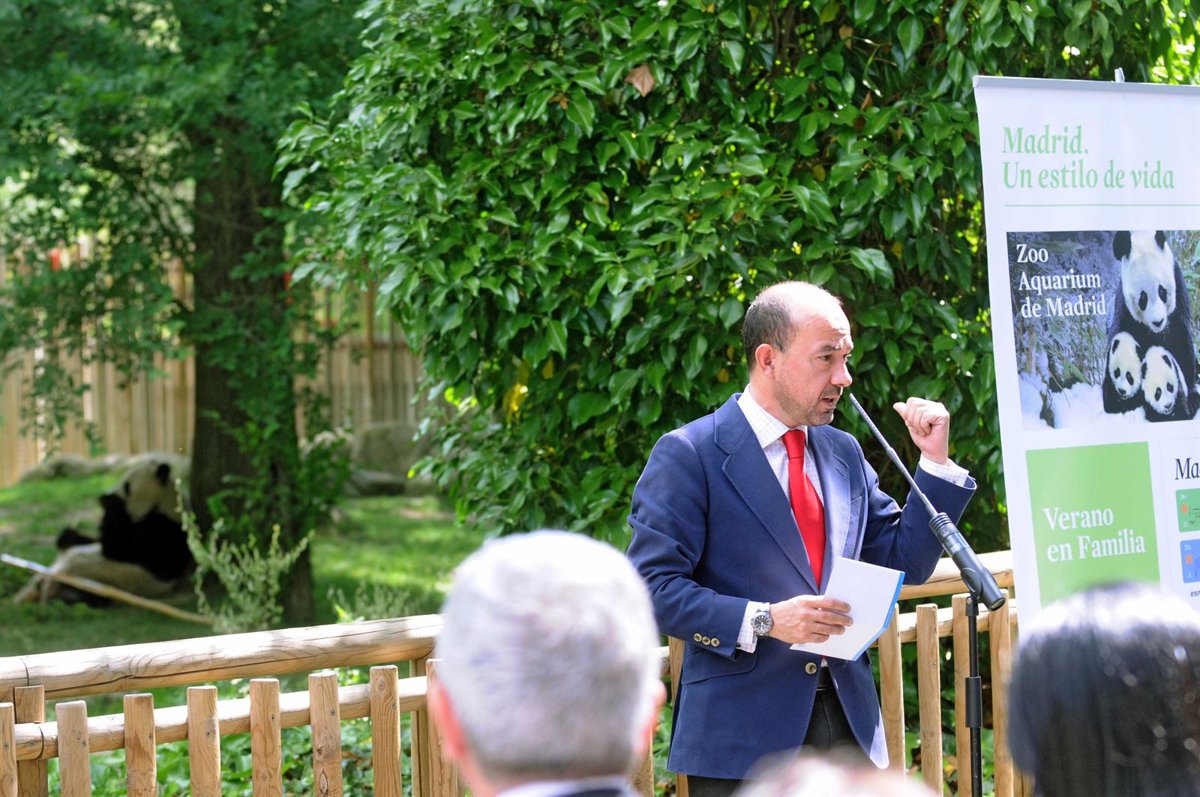 Villanueva ha destacado los lugares de ocio de especial interés para una familia que visite Madrid, como lo son el Parque de Atracciones, el Paseo del Arte o el propio Zoo Aquarium de Madrid, donde ha sido presentada esta campaña, justo delante del espacio de los osos panda, principal atractivo parque madrileño.
