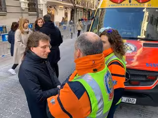 El alcalde de Madrid, José Luis Martínez-Almeida, conversa con miembros del Samur-Protección destinados a la basílica de Jesús de Medinaceli. - EUROPA PRESS
