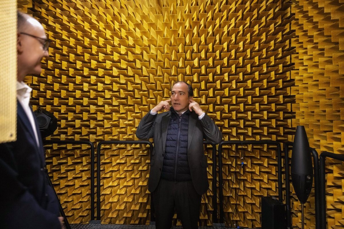 El delegado de Urbanismo, Medio Ambiente y Movilidad, Borja Carabante, en una cámara anecoica de ruido cero - AYUNTAMIENTO DE MADRID
